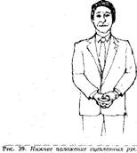 Этот жест обозначает разочарование и желание человека скрыть свое отрицательное отношение. Этот жест имеет три варианта: скрещенные пальцы рук подняты на уровне лица, руки лежат на столе, на коленях при сидячем положении или внизу перед собой в стоячем положении.