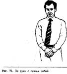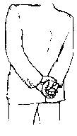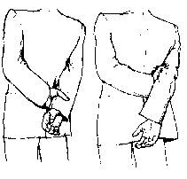 В этом случае одна рука захватывает запястье так крепко, как будто она пытается удержать ее от нанесения удара. Интересно, что чем более сердит человек, тем выше передвигается его рука по спине. Человек на рис, например, проявляет большее усилие для самоконтроля, чем человек на рис., потому что рука на рис. захватывает уже предплечье, а не просто кисть руки.