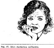 Человек кладет пальцы в рот в состоянии сильного угнетения. Это бессознательная попытка человека вернуться к тому безопасному, безоблачному времени в грудном возрасте, когда ребенок сосал грудь своей матери. Маленький ребенок сосет палец, а что касается взрослого, то кроме пальца он засовывает себе в рот такие предметы, как сигареты, трубки, ручки и подобное. Если жесты, связанные с прикрытием рта рукой, обозначают обман, пальцы во рту говорят о внутренней потребности в одобрении и поддержке. Поэтому, когда появляется этот жест, необходимо поддержать человека или заверить его гарантиями.