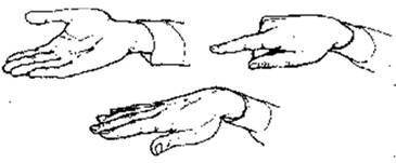 А. Три положения ладони.