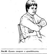 Когда человек начинает с вами откровенничать, он обычно раскрывает перед собеседником ладони полностью или частично. Как и другие жесты языка телодвижений, это полностью бессознательный жест, он подсказывает вам, что собеседник говорит в данный момент правду. Когда ребенок обманывает или что-то скрывает, он прячет ладони за спиной. Аналогично, если жена хочет скрыть от мужа то, что всю ночь прогуляла с подругами, она во время объяснений будет прятать руки в карманы или держать их скрещенными. Таким образом, спрятанные ладони могут подсказать мужу о том, что она скрывает правду