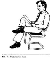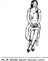 Первое - согнутое колено. В этом случае женщина сидит, подогнув одну ногу под другую и направив острие колена на того человека, к которому она проявляет интерес. Это очень свободная поза, исключающая всякие формальности и дающая возможность кокетливо обнажить колени.