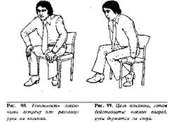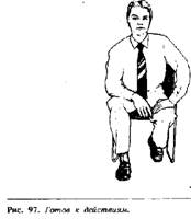 Жесты готовности, сигнализирующие о желании закончить разговор или встречу, выражаются подачей корпуса вперед, при этом обе руки лежат на коленях, или обе руки держатся за боковые края стула