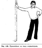Люди прислоняются к объектам или друг к другу для того, чтобы заявить свои территориальные претензии на этот предмет или человека. Если человек прислоняется к тому, что ему не принадлежит, то этот жест используется как вызов или стремление подчеркнуть свое превосходство. Влюбленные постоянно держатся за руки или обнимаются на людях в общественных местах, чтобы показать другим, что они имеют право друг на друга. Руководитель отдела кладет свои ноги на стол или на ящики письменного стола, а также может опереться на косяк входной двери в офисе, чтобы подчеркнуть свое право на этот офис и его мебель.