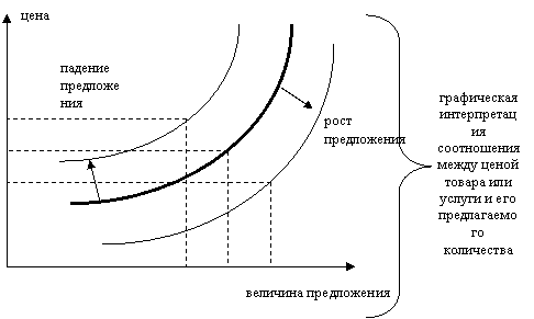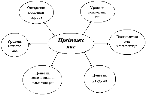 Предложение – совокупность товаров и услуг, предъявляемых продавцами-производителями при данном уровне цен