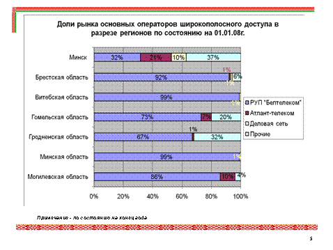 Значительно возросла емкость оборудования широкополосного доступа. Узлы широкополосного доступа к сети Интернет установлены во всех районных центрах. Пользователями широкополосного доступа являются более 170 тысяч.