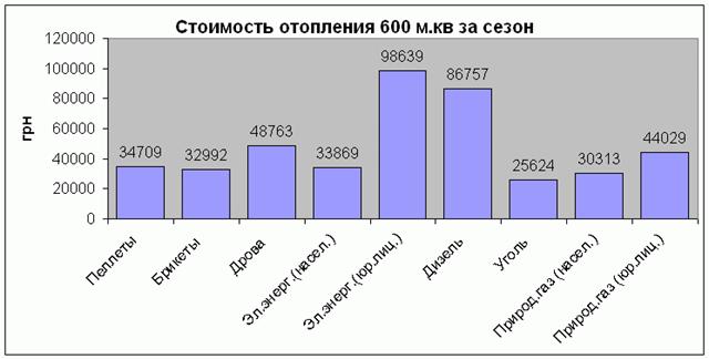 Рис. 1. Диаграмма стоимости отопления дома 600 м. кв.