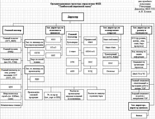 Федеральное казенное предприятие «Тамбовский пороховой завод» основано в 1915 году. Численность сотрудников на момент написания документации составляет 1400 человек. Основными направлениями работы предприятия являются: