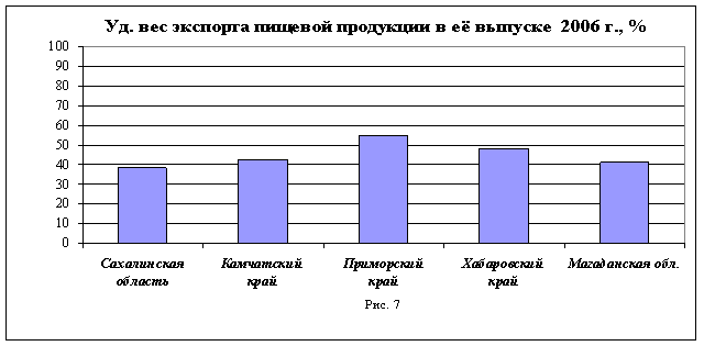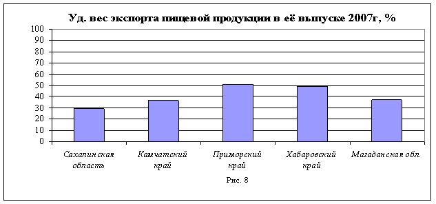Рисунки 7 и 8 отражают долю экспорта пищевой продукции в её выпуске в Разрезе субъектов ДВФО.