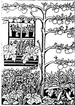 Южные стены—идеальное место для выращивания большинства фруктовых деревьев, особенно таких нежных, как персик. Существуют карликовые породы деревьев, которые при отсутствии почвы могут расти в контейнерах. Вишни Морелло можно выращивать вдоль северных стен вместе с кустами смородины и альпийской клубникой, которые дадут отличный урожай в тенистых местах. В тени растет и иерусалимский артишок, а также многие другие однолетние и многолетние растения. Тенистые места можно сделать более светлыми, окрасив стены в белый цвет или установив зеркала для отражения солнечного света.