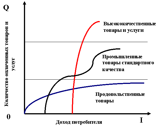 Кривые Энгеля в современной интерпретации могут быть представлены в следующем виде.