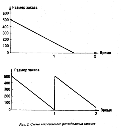 В процессе производства число заказанных единиц уменьшается до нуля, а средние запасы в этом случае равны 250 единицам. Изобразим это графически (рис. 3).