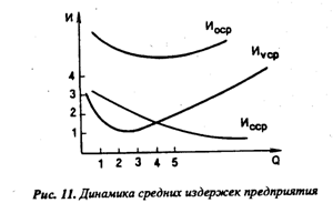 В данном случае на характер изменения средних общих издержек оказывают влияние не только средние переменные, но и средние постоянные, которые с увеличением объемов производства уменьшаются.