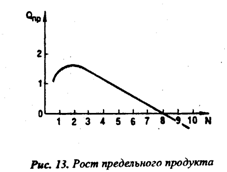 Такой характер изменения роста предельного продукта объясняется снижением роста средней производительности труда на одного работника, он вызывается тем, что при росте численности основные фонды остаются неизменными.