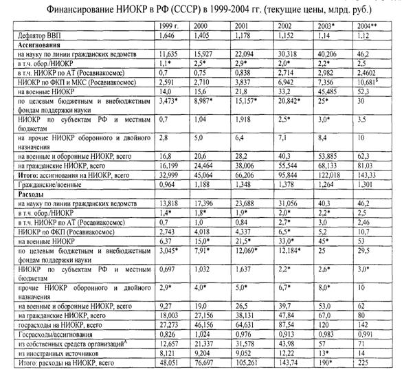 В 1999 г. Доля расходов на НИОКР в ВВП Россиисоставила 0,996%, а в 2003 г. Его наукоемкость оценивается в 1,4%. В развитых странах данный показатель составляет 2,5-3,3%.
