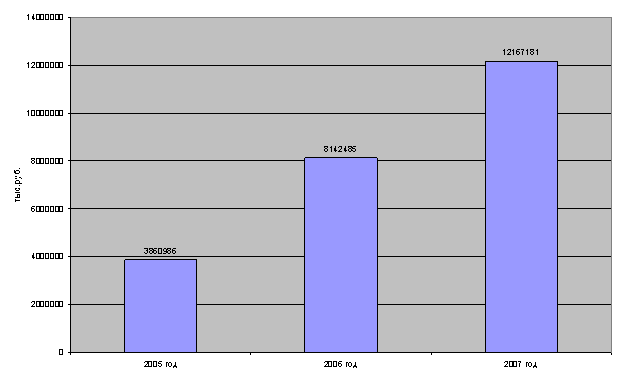 В соответствии с отчетами за годы объем уступленных прав требований увеличился в 4 раза, если в 2005 году объем составлял 3860986 тысяч рублей, то за 2007 год он составил тысяча рублей.[52]