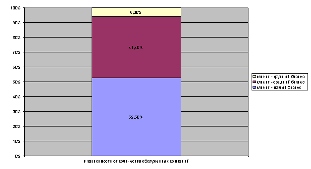 Рисунок 6 - Число обслуженных компаний различных размерных классов за 2007 год