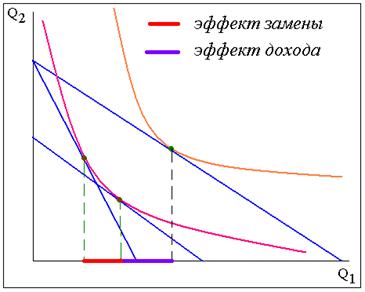 Рис. 3. Разложение эффекта цены по Слуцкому
