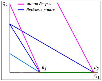 Рис. 7. Эффекты дохода и замены для товаров худшего качества
