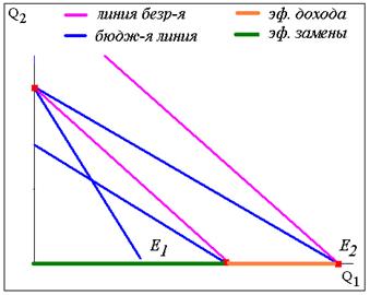 Рис. 6. Эффекты дохода и замены при совершенной заменяемости