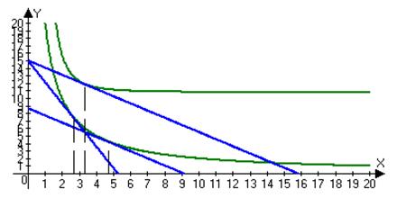 1) Какой набор товаров минимизировал бы мои расходы (целевая функция) при изменившемся соотношении цен, при условии, что я сохраню прежний уровень полезности (ограничения)?