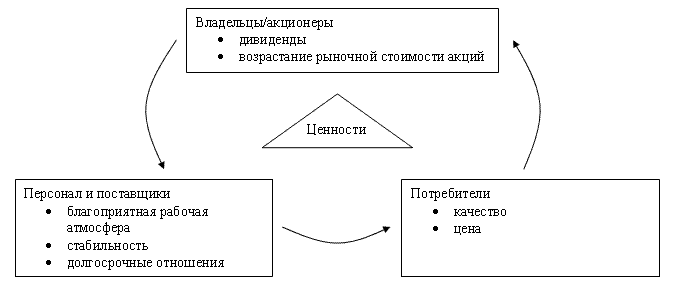 Рис. 1 Система ценностей акционеров, персонала, поставщиков и потребителей продукции предприятия