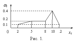 Для построения полигона частот на оси абсцисс откладывают варианты xi, а на оси ординат – соответствующие им относительные частоты wi. Точки (xi, wi) соединяют отрезками прямых и получают полигон относительных частот.