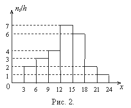 Определение 9. Гистограммой частот называется ступенчатая фигура, состоящая из прямоугольников с основанием h = xi – xi–1 и высотами ni/h.