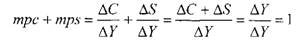 Сумма предельной склонности к потреблению и предельной склонности к сбережению равна 1: