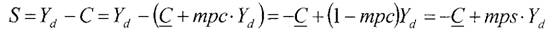 Предельную норму изъятий можно выразить также через предельную склонность к сбережению (так как именно сбережения являются изъятием). Поскольку mpc + mps = 1, то mpc = 1 - mps. Подставим выражение (1 - mps) в уравнение MLR вместо трс, получим: