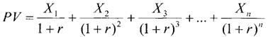 Основным фактором, определяющим инвестиции, по мнению Кейнса, является предельная эффективность капитала, под которой понимается это эффективность последнего инвестиционного проекта, который дает неотрицательную величину чистого дохода. Поскольку инвестиционные расходы возмещаются только через определенное количество лет, то необходимо применять дисконтирование, т. е. приводить стоимость будущих доходов к настоящему моменту. Стоимость инвестиционного проекта в настоящем (present value - PV) может быть рассчитана по формуле: