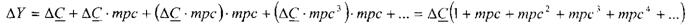 Мы получили бесконечно убывающую геометрическую прогрессию (а это и есть математический смысл мультипликатора) с основанием (трс) меньше единицы. Следовательно, ее сумма равна