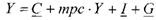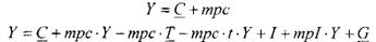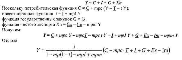 Подставим потребительскую функцию в уравнение совокупного дохода (выпуска), затем перегруппируем и в результате получим: