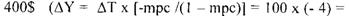 Изменение располагаемого дохода ведет к изменению потребления в соответствии с величиной предельной склонности к потреблению:
