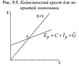 «Кейнсианский крест» для закрытой экономики (для трехсекторной модели экономики) изображен на рис.7.7.