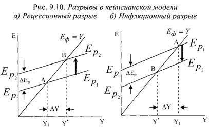 Если фактический равновесный ВВП меньше потенциального (Уфакт < Y*), то в экономике имеет место так называемый рецессионный разрыв. Такая ситуация, в соответствии с кейнсианскими представлениями, обусловлена недостаточностью совокупных расходов