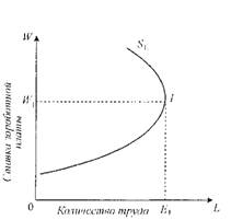 Увеличение заработной платы до определенного уровня ведет к росту предложения труда, но после достижения этого уровня (W1) начинает сокращаться несмотря на дальнейший рост заработной платы. Один и тот же фактор - рост заработной платы - может приводить и к росту и к сокращению предложения труда. Объяснение этой закономерности связано со спецификой проявления эффекта дохода и эффекта замещения на рынке труда.