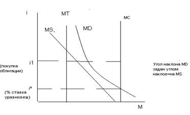 Кривая предпочтений ликвидности: отражает зависимость спроса на деньги как от трансакционного, так и от спекулятивного спроса. MD=MT+MS, MS- спекулятивный спрос, MT- трансакционный спрос (это обозначения по лекции)