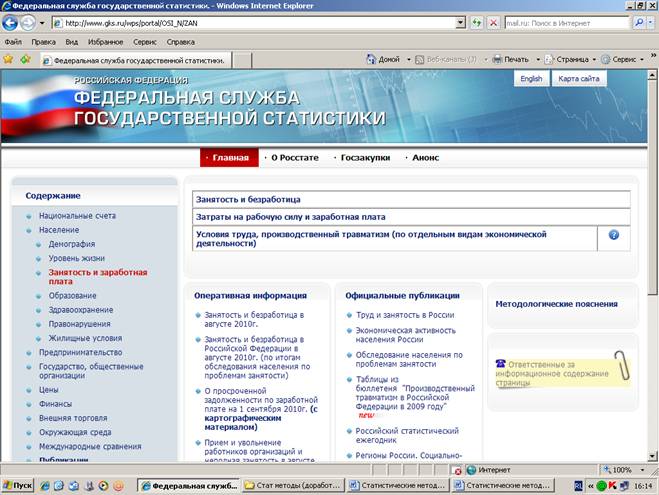 При поиске статистических данных на сайтах сети Интернет (например, на сайте Росстата www. *****) необходимо руководствоваться главным меню сайта.