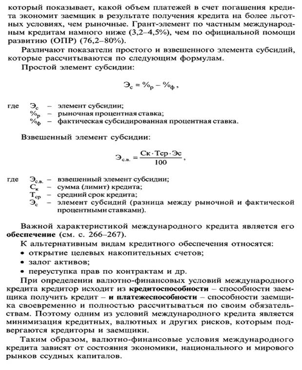 Для сопоставления условий предоставления различных кредитов используется показатель грант-элемент (льготный элемент субсидии),