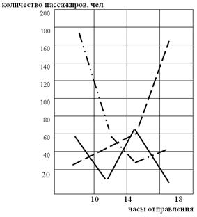 Анализ рис. 4 показывает неравномерность спроса на перевозки по дням недели, а также и в течение дня: в рабочие дни максимальный поток в утренние часы и после 15–16 часов; в субботу – в 18–19 часов; в воскресные дни – в утренние часы в 7–9 часов утра. В рабочие дни – объем пассажирских перевозок резко снижается.