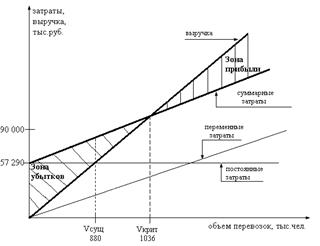 Vкрит. – критический объем перевозок обеспечивающий безубыточную работу предприятия, тыс. чел.