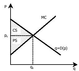 Рис. 1.1 Соотношение потребительского и производительного излишков.