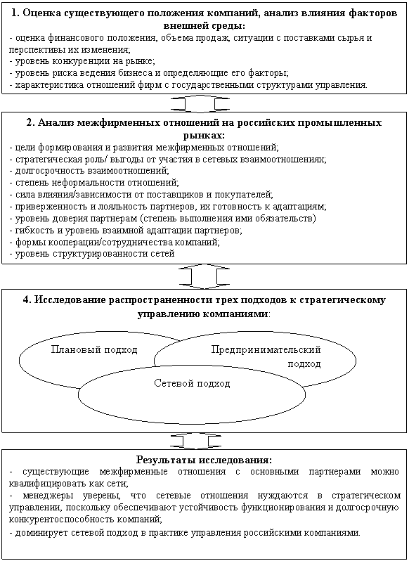 Поскольку традиционные способы организации экономической деятельности (рынок и иерархия) не могут объяснить новые формы взаимодействия компаний, возникла потребность в изучении теоретических принципов формирования и развития сетевых форм организации бизнеса, а также в определении совокупности конкретных управленческих навыков, необходимых российским менеджерам для стратегического управления межфирменными отношениями.