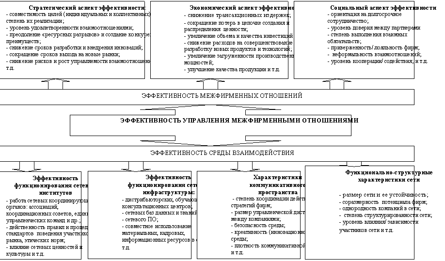 10. Разработана концептуальная модель оценки эффективности управления межфирменными отношениями, включающая анализ стратегического, экономического и социального аспектов эффективности взаимоотношений и функционирования сетевой среды.