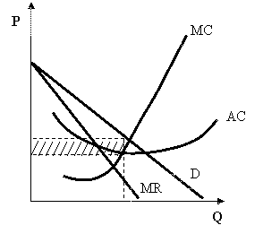 Итак, фирма обладает рыночной властью, когда она может воздействовать на цену своего товара, изменяя его количество, которое она готова продать. Последнее означает, что кривая спроса на продукцию такой фирмы не может быть горизонтальной линией, а должна иметь отрицательный наклон. Как только цена становится функцией от количества продаваемой продукции, предельная выручка будет меньше цены при любом положительном объёме выпуска. Поэтому условие максимизации прибыли для любой фирмы, будет точно таким же, как и у чистого монополиста: максимизирующий прибыль объём выпуска достигается, когда предельная выручка равна предельным издержкам.