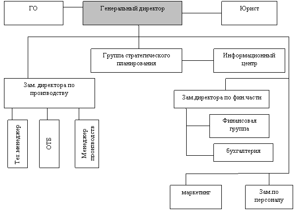 Решением производственных проблем в предлагаемой структуре управления будет заниматься заместитель генерального директора по производству и его помощники – технический директор, отвечающий за подготовку производства, начальник отдела охраны труда и техники безопасности и начальник производства, которому подчиняются основные группы исполнителей.