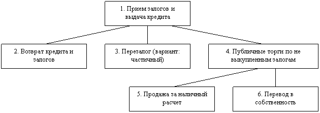 Прием залогов и выдача кредита – оценка залогов (ювелирных изделий или вещей), оформление документов и выдача кредита.