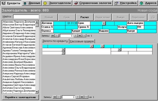 Рисунок 1 - Главная форма приложения «Ломбард», вкладка «Кредиты»