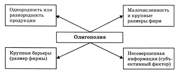 Олигополия является одной из самых распространенных структур рынка в современной экономике. В большинстве стран почти все отрасли тяжелой промышленности (металлургия, химия, автомобилестроение, электроника, судо - и самолетостроение и др.) имеют именно такую структуру. На 1 схематически отражены основные черты олигополистического рынка.[3; 28]